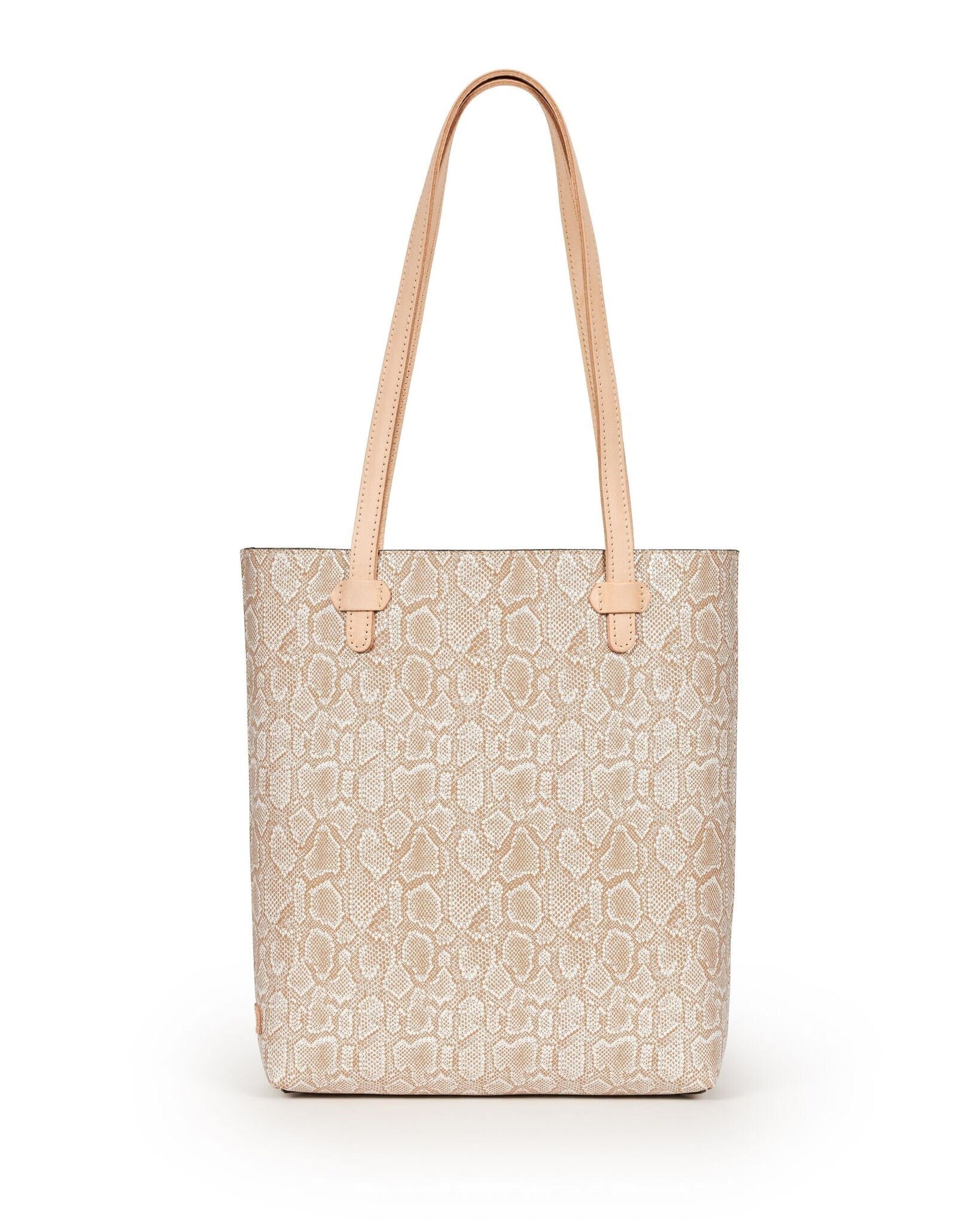 Description: Made to hold its shape while staying sleek and light, the Everyday Tote keeps necessities nearby with comfort and ease. Carry this structured bag by its comfortable woven straps. Interior slide pocket and hookclip leather lanyard (great for keeping up with keys!) Natural leather trim and comfortable woven handles.